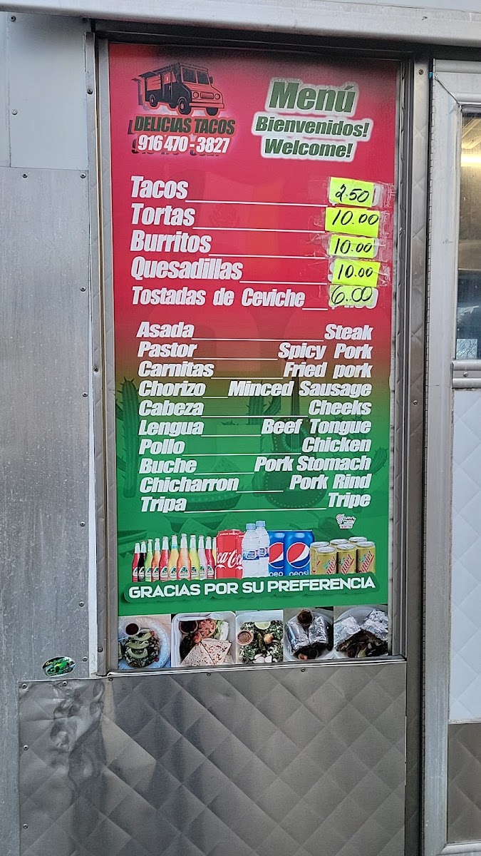 Delicias Taco Truck offers a vibrant selection of flavorful Mexican dishes, perfect for satisfying any craving. The Tacos are a standout, with a variety of fillings, allowing guests to customize their meal to taste. For something heartier, their Tortas and Burritos provide a filling option, packed with rich flavors and fresh ingredients. The Quesadillas are another fan favorite, offering a deliciously cheesy experience with optional fillings that elevate each bite. If you’re in the mood for something light and refreshing, the Tostadas De Ceviche are a perfect choice, featuring a zesty, seafood-based topping on a crispy tostada. Each dish is carefully prepared, bringing the essence of authentic Mexican cuisine to the streets of Sacramento. With generous portions and reasonable prices, Delicias Taco Truck is a must-visit for those craving a delicious and casual meal.